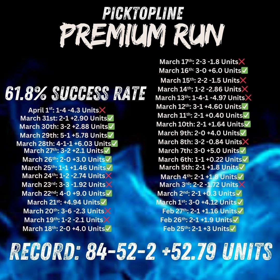 It’s TFlint from PickTopLine, The Canadian with Endless Energy. Time is Money, and there is nothing more frustrating then losing a play via the hook. ALL my plays are sent out each day by 1pm EST to ensure we're getting ahead of the market and capitalizing on CLV.